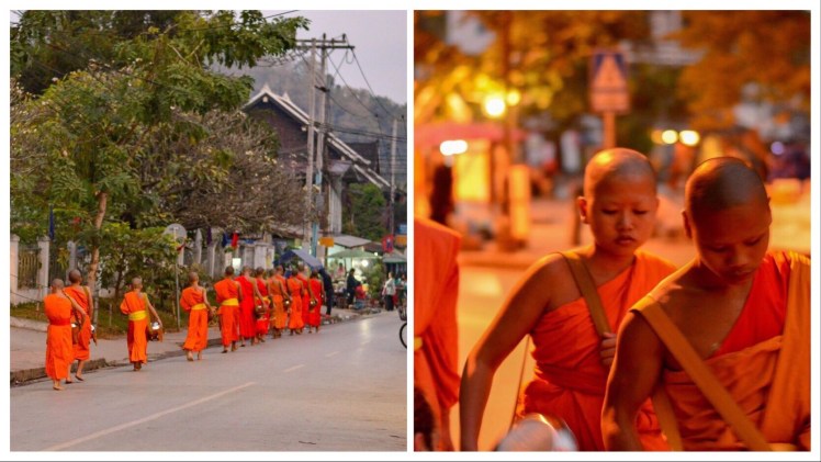 No visit to LP is complete without getting up at 4am to witness the Alms Monk ceremony – this is an old Buddhist tradition that has lasted for centuries. As the sun rises, the monks appear from the temples to make merit and also to collect food. I don’t know how it happened but somehow we ended up kneeling on the pavement along with the locals, passing the offering (rice) to the monks. They appear so suddenly in the shadows of the early sunrise and everything is so quiet. I’m holding my breath so as not to disturb the atmosphere, trying to keep my head down all the while worrying that I’ll be caught taking a quick glimpse of the young Buddhist monks. After the ceremony most of the alms are given to the poor street kids. It’s a peaceful and spiritual experience until a few indiscreet tourists start to quite literally chase towards the monks sticking their cameras in the monks’ faces. We return to our hotel lost in thoughts; by participating in this spectacle are we directly contributing towards demeaning this ancient tradition? … my mind is not made up on that subject.