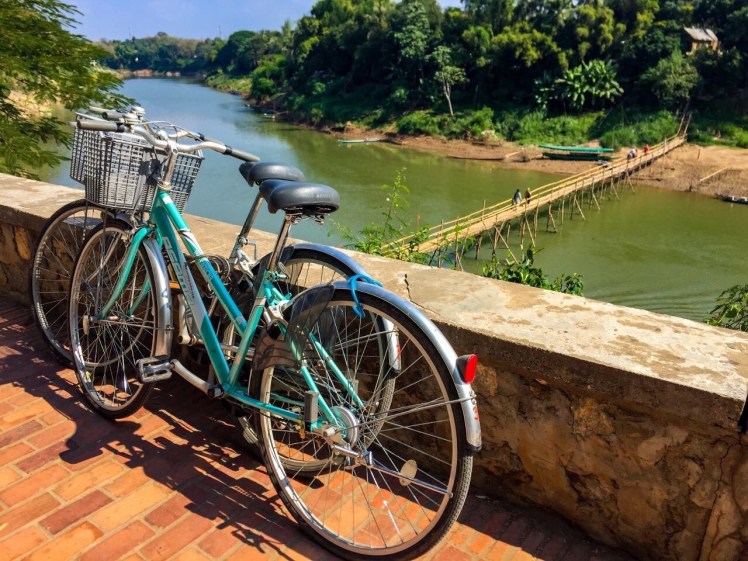 Other temples and monasteries we enjoyed were Wat Xien Muang, Wat Xienthong, That Makmo pagoda and Wat Mahathat. Some 3km outside of the centre, there’s a lovely pagoda towering lonely above the city – Wat Phon Phao. There was not a single tourist here, in fact there was not a single human soul at this temple. After our exhausting bike ride, we parked up by the river at the View Point Cafe for lunch and lovely views across the river .