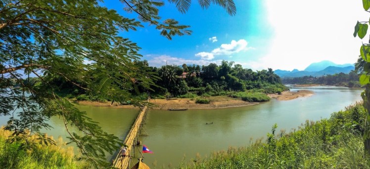 If I was to come up with just one word to describe LP it would have to be – ‘grace’ – it’s a place where you pause and reflect whilst sipping on some wine or Lao beer on the palm-fringed river bank. This is where the two rivers Mekong and the Nam Khan meet and carve their way around the jungle-covered hills and rock formations and create a little peninsula on which Luang Prabang is built. There’s a dozen little bridges, some sturdy, some as thin as a bamboo stick. Most of the fragile ones are swept away each year in floods. The LP’s citizens patiently rebuild these time and time again before the water takes them down a year later.