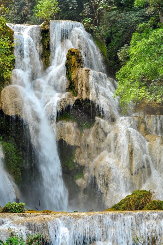 There are two waterfalls in the vicinity of LP. The first one – Kuang Si – is simply stunning. I’ve seen some impressive waterfalls during my travels, but this one is in such a picturesque and serene setting. What is it about waterfalls? I always feel such an overwhelming sense of joy as I stand next to an awe-inspiring waterfall and through its moist catching a play of colours becoming a beautiful rainbow.